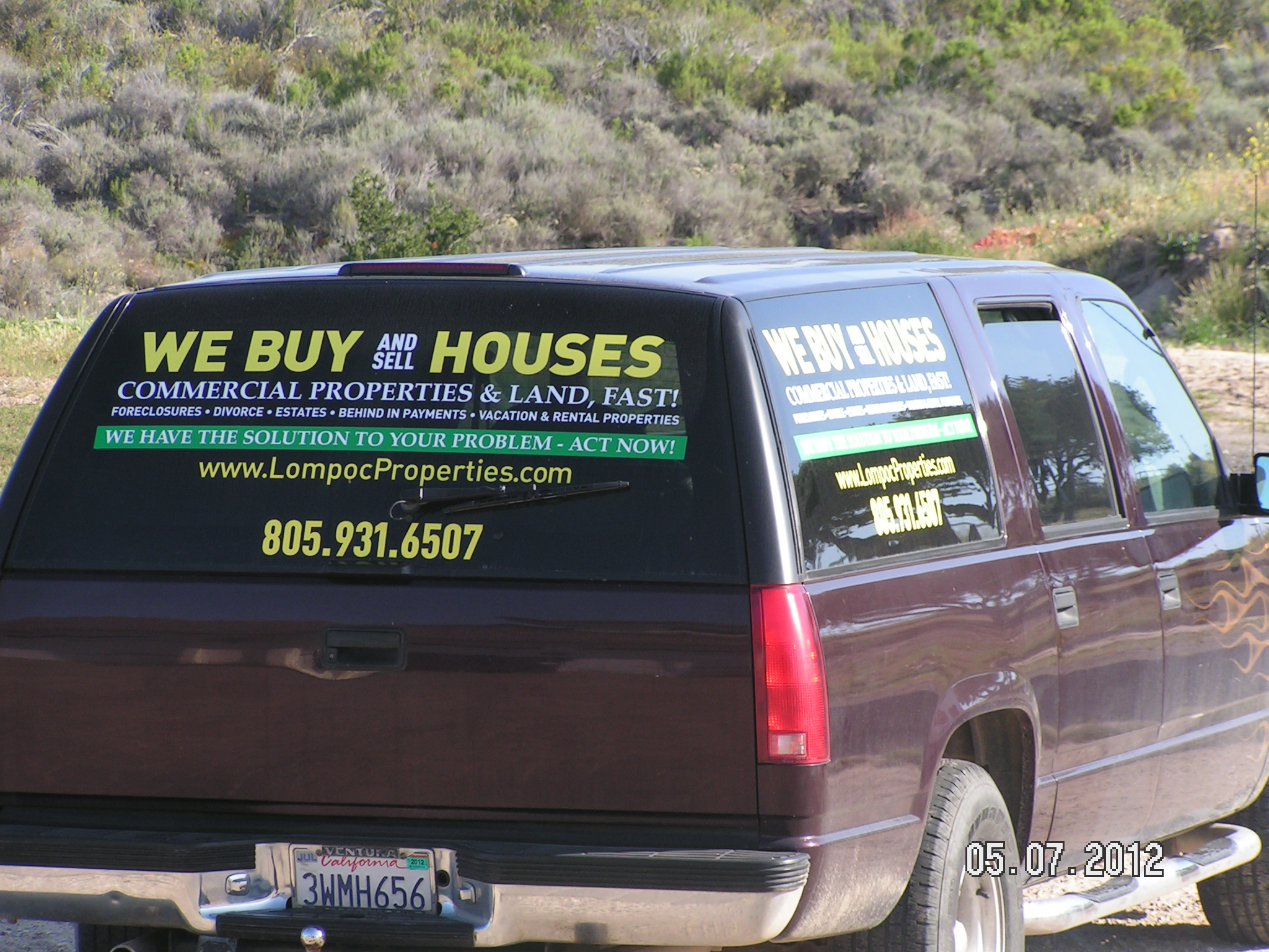 Vehicle window lettering is more resistant and weatherproof and the window lettering (on an SUV) is more visible being at or above eye level. Car magnets can easily blow right off at higher speeds and tend to lose their adhesive power over time, and can be stolen. Laser window lettering is the next level of vehicle advertising between car magnets and vehicle wraps. Magnets cost under $20, lettering is in the low hundreds, and vehicle wraps cost per square foot (avg. cost $750-$1200) depending upon the size of the vehicle. (One good deal and it's paid for!) It's about a level of commitment, as well.